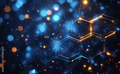 Visualization of glowing hexagonal patterns and sparkling particles in blue light