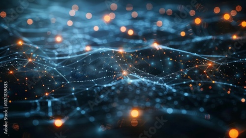Visualization of interconnected particles in a cyber network related to artificial intelligence.