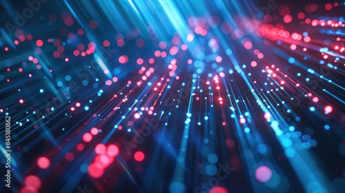Visualization of large data sets with a sci fi twist Neon illuminated streaks on an abstract backdrop featuring vivid blue and red hues