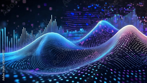 visualization of wave particle, digital background perfect for tech processes, neural networks, artificial intelligence and data transfer, ai generated