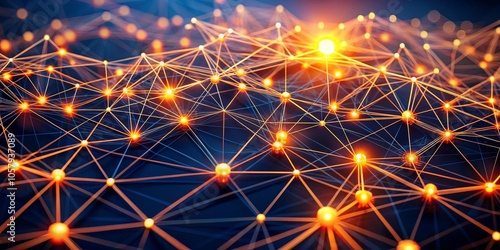 Vivid Interconnected Nodes Network Glowing Spheres and Lines, Abstract Blue Background - Technological Complexity, Digital Dynamics for Website, Presentations