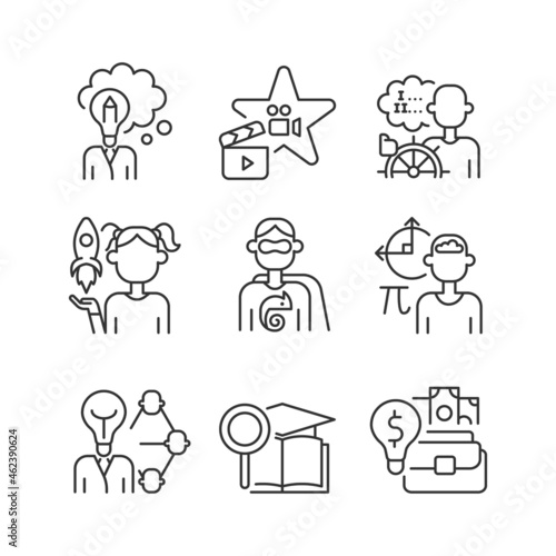 Vocation linear icons set. Professional and educational abilities. Networking, entrepreneurship talent. Customizable thin line contour symbols. Isolated vector outline illustrations. Editable stroke