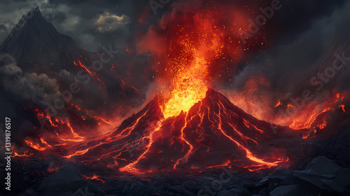 volcanic fiery eruption