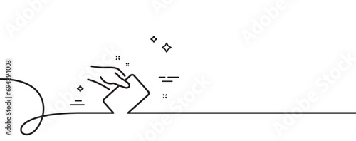 Vote box line icon. Continuous one line with curl. Hand with Voting ballot sign. Public election symbol. Voting ballot single outline ribbon. Loop curve pattern. Vector