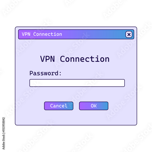 Vpn connection window with gradient. Registration panel in old style. Safety connection software.