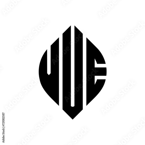 VUE circle letter logo design with circle and ellipse shape. VUE ellipse letters with typographic style. The three initials form a circle logo. VUE circle emblem abstract monogram letter mark vector.