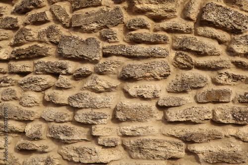 Wall constructed from irregularly shaped stones rustic appearance
