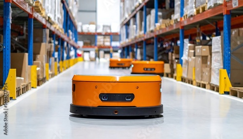 Warehouse robots transporting goods.