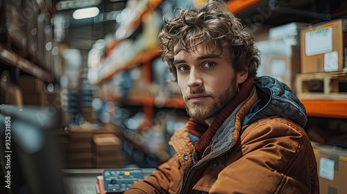 warehouseman checking delivery stock in warehouse on computer pc warehouse manager using warehouse management software with scanner