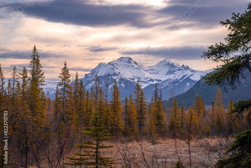 Warm Sunrise Over Banff Mountains In The Spring