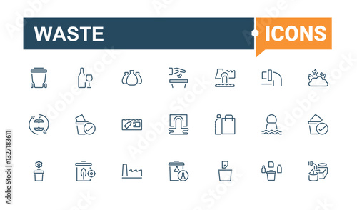 Waste icon set. Pack of environment, bag, recycling, save, reduce, recycle and more. Zero Wasting icon pack. Perfect for logos and infographic. Minimalistic icons.