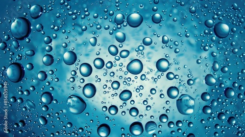 Water drops or oil bubbles on blue background