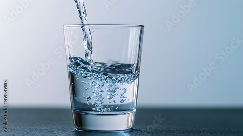 Water flowing into a glass, quenching thirst and
