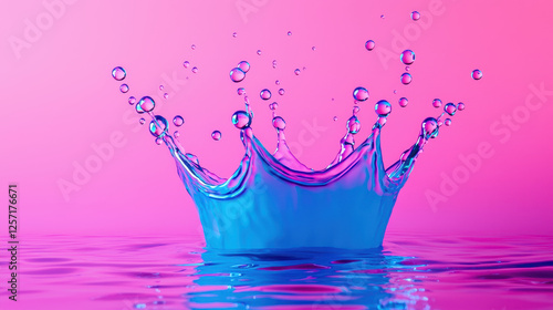 Water splash with vibrant pink and blue background, creating dynamic visual effect