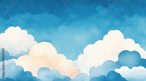 Watercolor Blue Sky with Clouds.