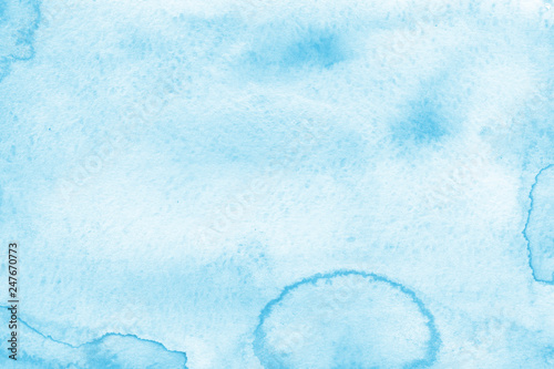 Watercolor blue texture with abstract washes and brush strokes on the white paper background. Digital paper background.