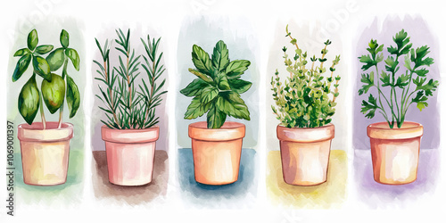 Watercolor Floral Design Featuring Five Unique Flower Types