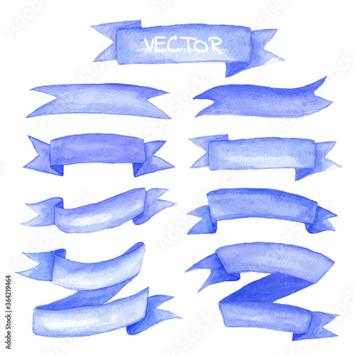 Watercolor ribbons and label elements set. Hand drawn vector illustration.