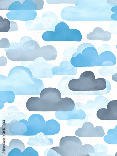 Watercolor sky with clouds, pastel blue and gray colors, patterned background