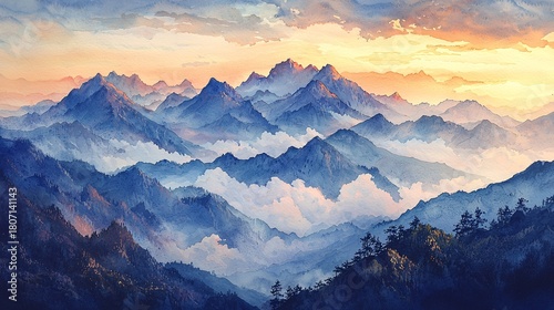 Watercolor style mountain scenery
