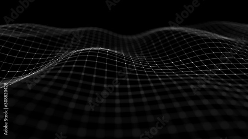 Wave of interlacing points and lines. Abstract background. Technological style. Big data. 3d rendering.