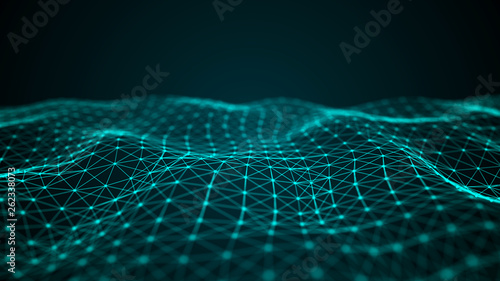 Wave of interlacing points and lines. Abstract background. Technological style for science, big data.3d rendering.