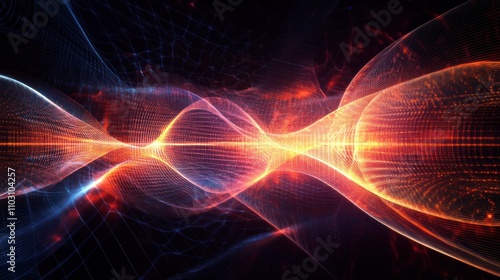 waves overlapping and forming interference patterns on a dark background with a glowing