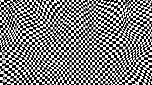 Wavy chess board. Chessboard concept. Wave distortion effect. Vector illustration.