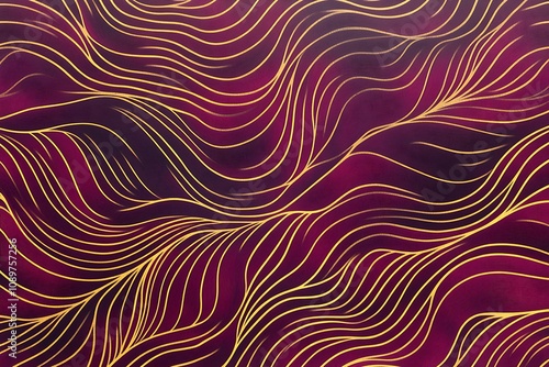 Wavy golden patterns on a burgundy gradient