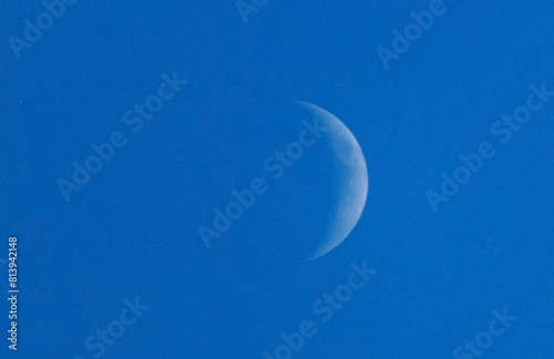 Waxing moon, blue sky, sunny day