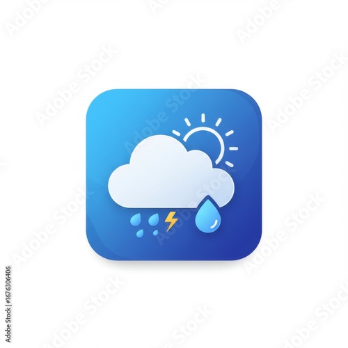 Weather App Icon Featuring Cloud Rain Sun and Lightning on Blue Square