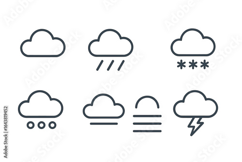 Weather icons depicting various atmospheric conditions including clouds, rain, snow, fog, and lightning