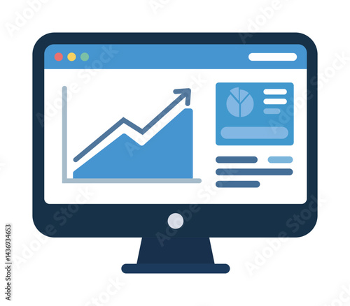 Web analytics information on a Computer screen flat icon. trend graphs report concept. statistic charts for planning and accounting, analysis, audit.