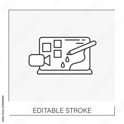 Web design line icon.Creating interface elements on digital sketchbook.User interface design. Freelance concept.Isolated vector illustration. Editable stroke
