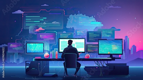 Web Developer Engineer Coding Full Stack developer computer person 2d illustration