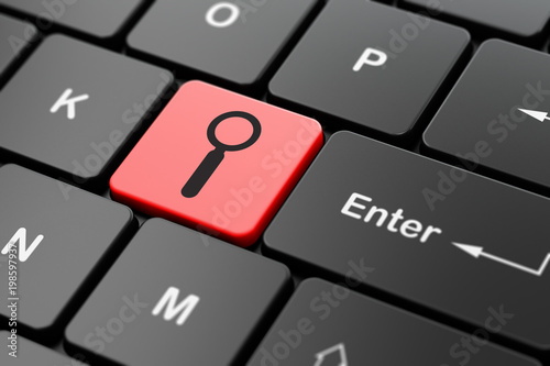 Web development concept: computer keyboard with Search icon on enter button background, 3D rendering