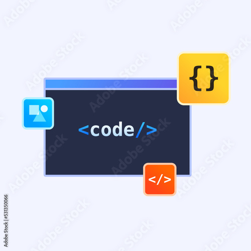 Web Development Programmer Icon with Terminal Prompt and Code Vector Illustration