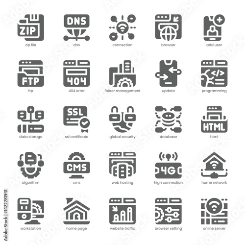 Web Hosting Icon pack for your website, mobile, presentation, and logo design. Web Hosting Icon solid design. Vector graphics illustration and editable stroke.