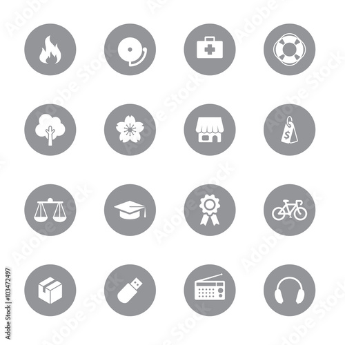 web icon set 6 on gray circle for web design, user interface (UI), infographic and mobile application (apps)