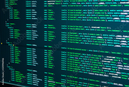 Web page java script code on computer monitor. Software computer programming code. Frontend java code
