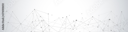 Website header or banner design with abstract geometric background and connecting dots and lines. Global network connection. Digital technology with plexus background and space for your text.