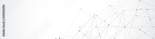 Website header or banner design with abstract geometric background and connecting dots and lines. Global network connection. Digital technology with plexus background and space for your text.