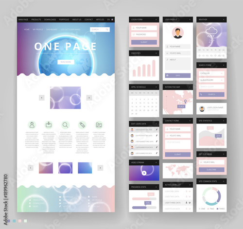 Website template design with interface elements