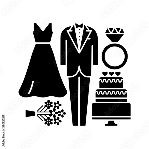 Wedding planning vector icon set marriage ceremony celebration elements design