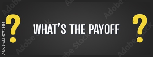 What’s the Payoff. A blackboard with white text. Illustration with grunge text style.
