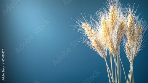Wheat stalks glow against blue background