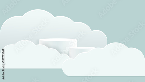 white 3d podium with cloud for display product presentation. vector illustration