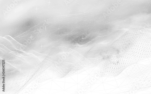 White abstract background. Hi tech network. Cyberspace grid. Outer space. Starry outer space texture. 3D illustration