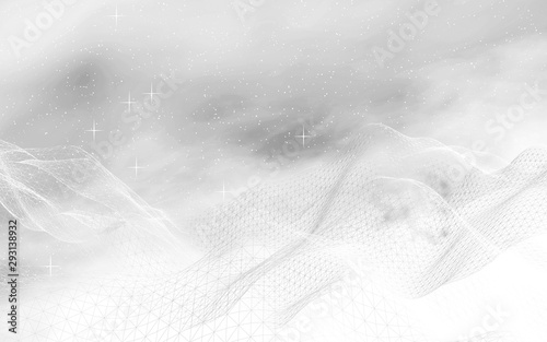White abstract background. Hi tech network. Cyberspace grid. Outer space. Starry outer space texture. 3D illustration