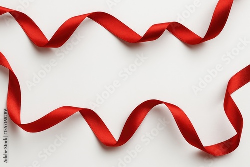 White background showcasing a red ribbon for gift wrapping